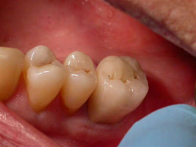 Changement de couronne metallique à couronne ceramique sur une molaire supérieure. Fiches conseils Avant Après